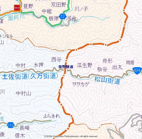 藩政時代以前から続く本来の松山街道は国道494号線が